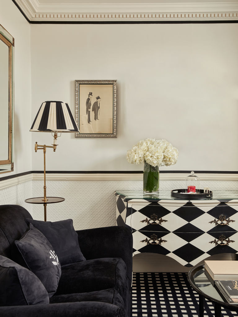 Spend a night in glorious black and white themed sophistication with beautiful mahogany furniture.