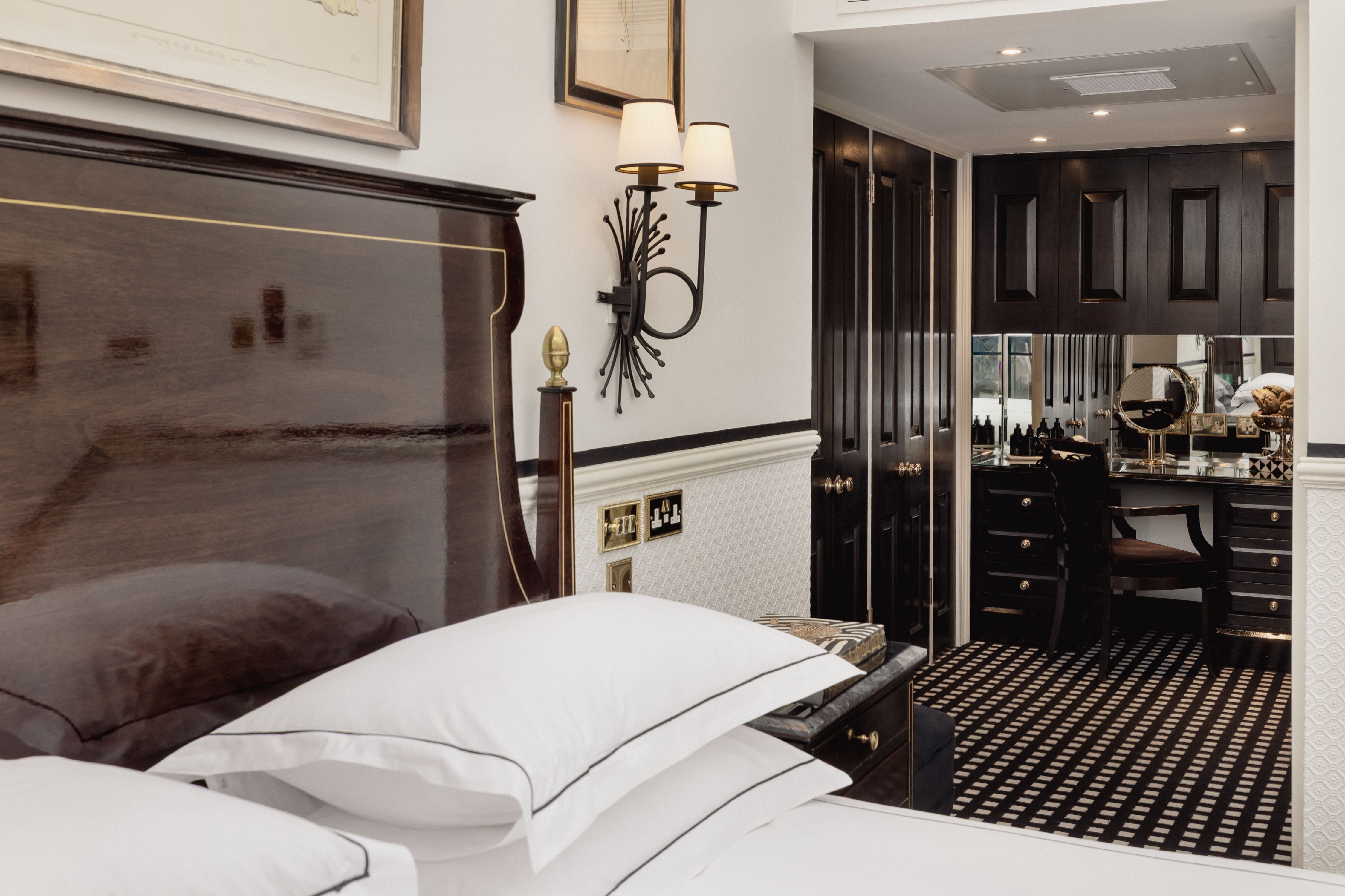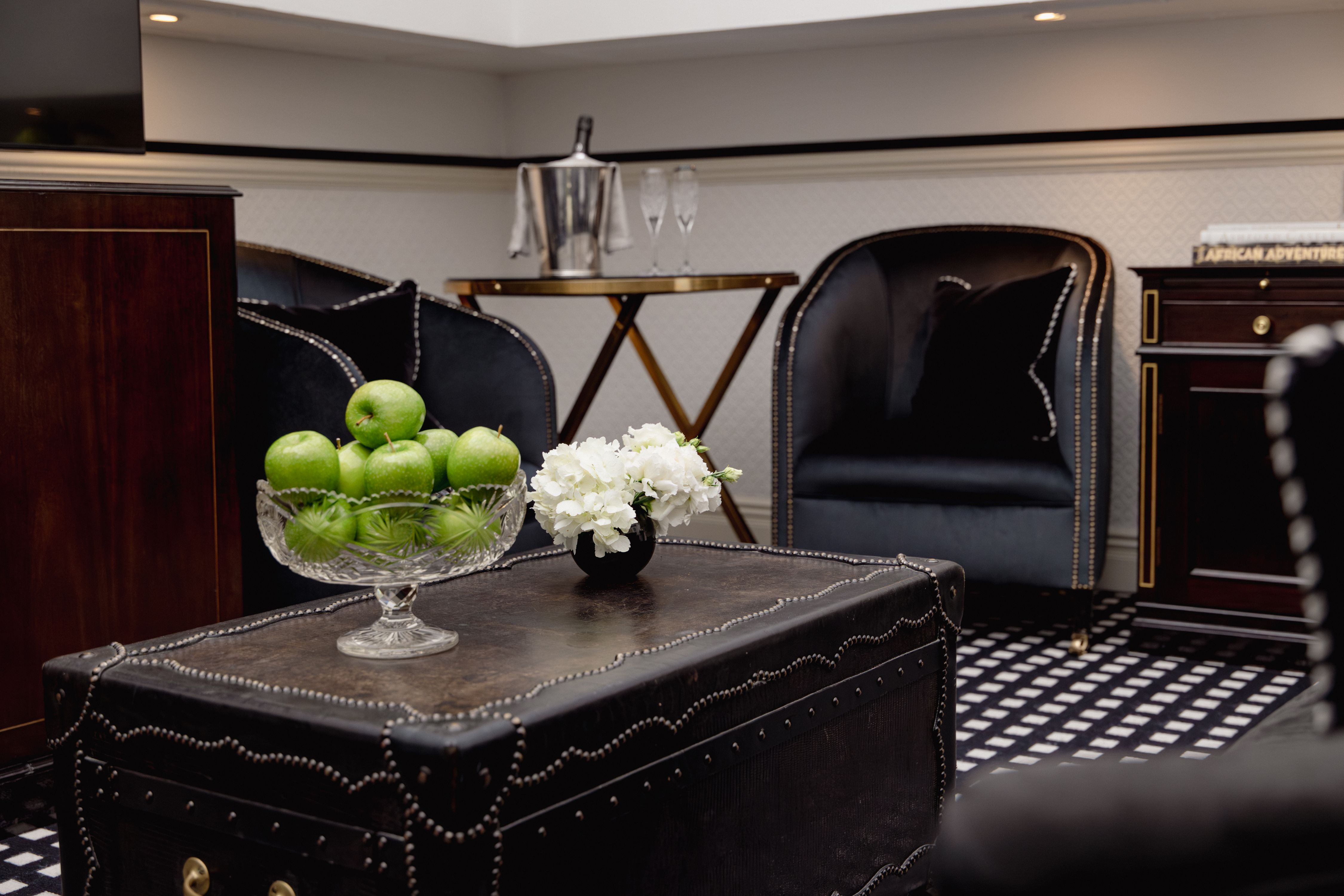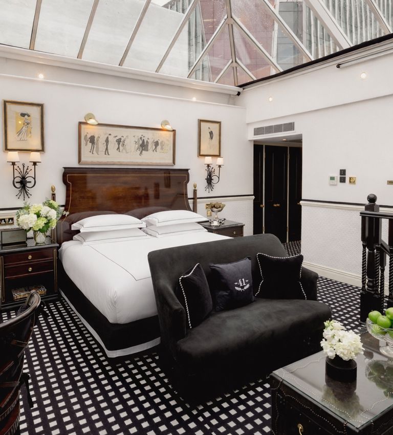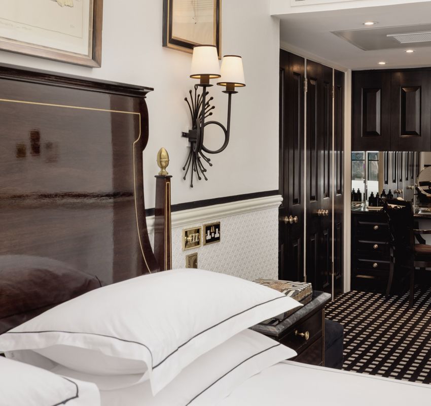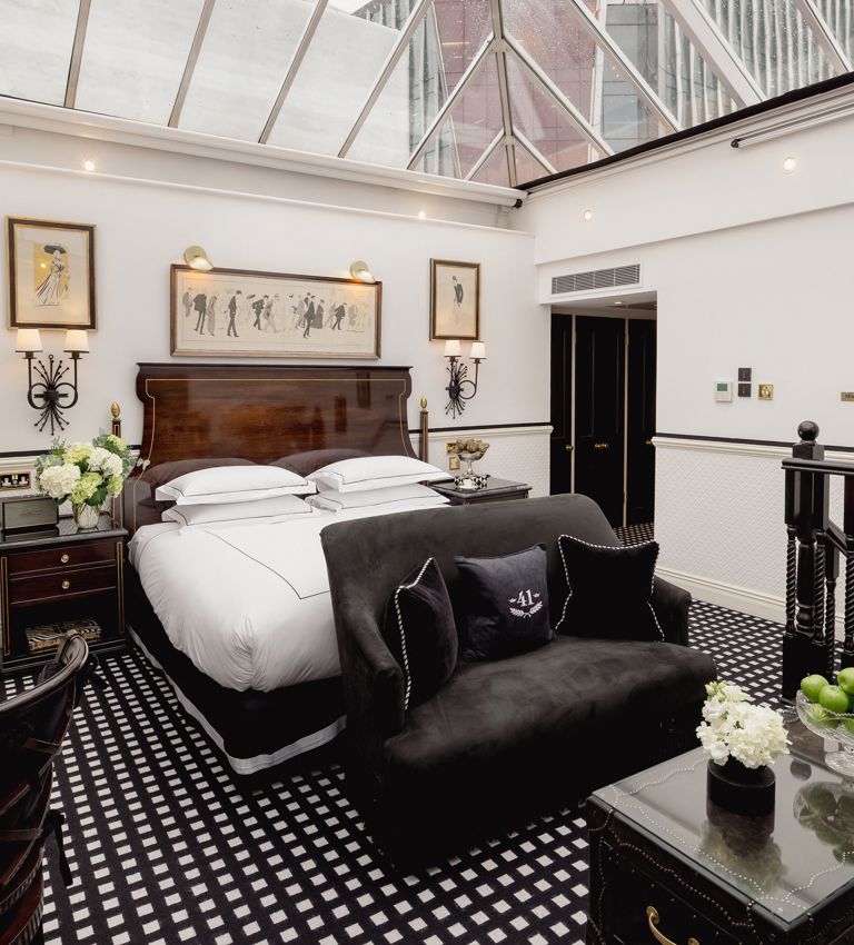 There is nowhere else in London quite like our Conservatory Suite. Arranged across two levels, the suite offers an intimate lounge with fireplace and guest bathroom below, while stairs lead to a spacious bedroom with an elegant dressing area and bathroom above. Overhead, the extraordinary conservatory ceiling defines the experience, filling the suite with natural light by day and inviting stargazing from your Savoir bed after dark. When privacy is preferred, electronic blinds discreetly close the space to the sky above.