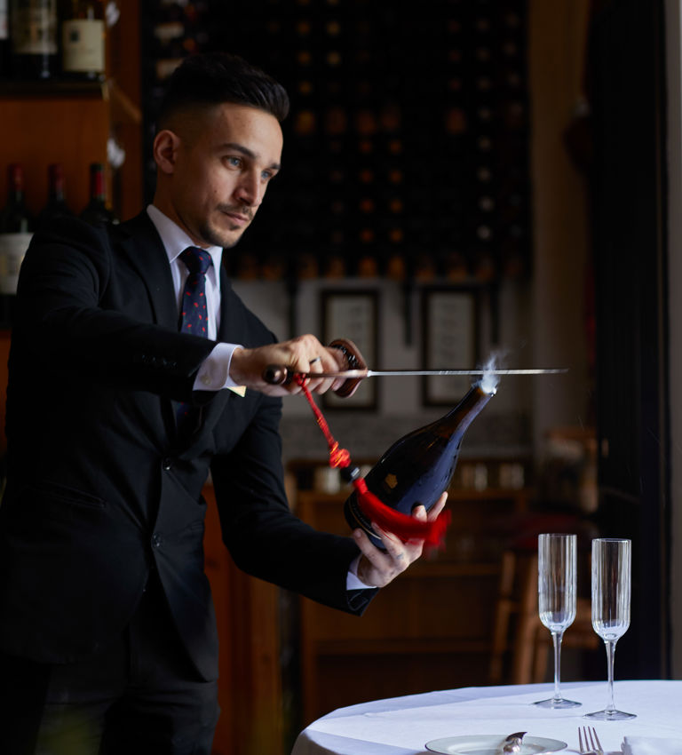 Embark on an exciting one-hour champagne experience where you will witness the art of sabrage - the ceremonial technique of opening a bottle with a sabre. As you enjoy your bottle of champagne, sample four plates of your choice from our small plates menu (below). Bookings must allow one day’s notice.